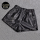 2017早春新款真皮短裤女修身显瘦松紧腰牛皮时尚热裤黑色大码皮裤