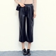 2016春秋冬韩国订单宽松显瘦PU皮阔腿裤八、九分裤松紧腰女装皮裤