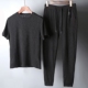 夏季高端 透气做皱亚麻面料 男士圆领短袖t恤休闲运动套装两件套