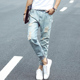 2017夏季九分裤男破洞牛仔裤 束脚裤潮韩版修身小脚9分裤子哈伦裤