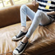 2017新款韩版修身男士九分裤 男装英伦雪花束脚破洞乞丐牛仔裤