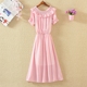 2017夏装新款时尚韩范女装条纹蕾丝A字裙显瘦短袖学生长裙连衣裙