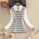 长袖T恤女2015秋冬新品女装娃娃领印花T恤韩版宽松显瘦上衣打底衫