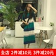 夏季韩版新款气质V领纯色吊带背心两件套高腰A字排扣半身裙套装女