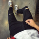 2016冬季港仔男潮休闲长裤裤口拉链修身收口小脚裤男装学生牛仔裤