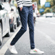 春季韩版修身潮牛仔裤男装九分裤大码铅笔裤港风青年休闲小脚裤子