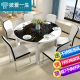 彼爱1生实木钢化玻璃餐桌折叠伸缩功能简约现代圆桌餐桌椅组合