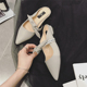 欧美2017新款包头平底凉拖女尖头一字粗跟凉鞋半拖鞋懒人鞋女鞋潮