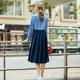 衬衫连衣裙女中长款收腰修身2017春装新款潮立领百褶大摆型a字裙