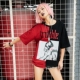 月老家 2017夏新款街头嘻哈肩部撞色系带拼接宽松圆领短袖T恤女潮
