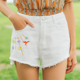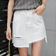 实拍 白色牛仔短裤 不规则下摆高腰热裤女韩版刺绣热裤