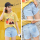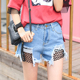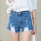 实拍 韩版高腰破洞毛须边牛仔短裤女