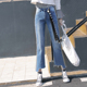 2017韩不规则撕破裤口高腰牛仔裤女百搭直筒显瘦长裤九分裤
