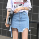 拼多多定制款 实拍高腰牛仔半身裙毛须边不规则下摆牛仔短裙A