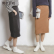 韩国东大门春秋新款纯色高腰弹力包臀裙中长款半身裙女长裙一步裙