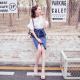 小姿家 春夏新欧美V领抽褶飞飞袖衬衫毛边高腰开叉牛仔裙两件套装