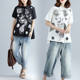 200斤胖mm夏装新款大码女装麻棉印花简约文艺休闲宽松百搭短袖T恤
