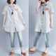 大码胖mm宽松显瘦亚麻印花中长款开衫宽松简约短袖衬衫加大衬衣