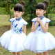 儿童青花瓷连衣裙女童夏季舞蹈服中国风演出服复古风公主裙表演服