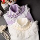 高领蕾丝打底毛衣套头针织毛衫女白色紫色长袖蕾丝花边粉色绿大码