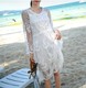 蕾丝连衣裙长袖长裙罩衫钩花刺绣镂空海边渡假防晒衫V领白色促销