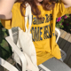 实拍 纯色大字母印花宽松破洞套头T恤 基础简约中长T