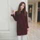 2016冬季新款韩版女装拼接假两件针织衫中长款宽松显瘦套头毛衣女