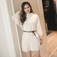 澳禧羊2015秋冬新款 中长款针织衫毛衣女 针织连衣裙半高领灯笼袖