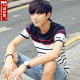 夏季男士短袖T恤 韩版修身圆领半袖条纹体恤上衣服男装打底衫小衫