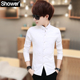 秋季男士衬衫长袖薄款青少年修身衬衣纯色休闲学生寸衫棉打底衫潮