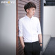 芃予夏装新款男士纯色修身白衬衫时尚韩版七分袖衬衫潮男中袖衬衣