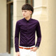 芃予秋装新款男士纯色修身长袖衬衫时尚韩版紫色衬衣男休闲衬衫潮