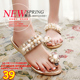 夏季学生舒适套趾人字拖平底坡跟女鞋亮片水钻串珠金色凉拖鞋