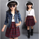 童装2017春装新款韩版中大女童牛仔外套裙子套装女孩连衣裙两件套