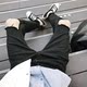 晨树 百搭黑色破洞牛仔裤男小脚修身款乞丐裤港风牛仔裤潮 九分裤