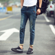 春夏款男士九分牛仔裤男裤子男生韩版潮流修身型破洞青年小脚裤潮