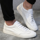 夏季男士日常休闲鞋 真皮韩版系带板鞋 白色平底男鞋百搭小白鞋男