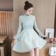 韩版时尚娃娃领蝴蝶结连衣裙女2017春装新款小香风长袖A字打底裙