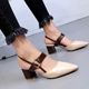 2017夏季新款粗跟凉鞋女尖头时尚性感前后绊带中跟百搭罗马淑女鞋