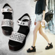 2016夏季新款真皮厚底高跟凉鞋女欧洲站休闲复古铆钉松糕罗马凉鞋