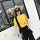 kico 2017春装新款宽松百搭简单纯棉小黄tee春夏季短袖T恤女上衣