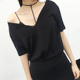 KICO定制 春秋新款长袖女韩版黑色高弹力choker v领设计Tee T恤