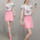 名媛2017新款女装夏装两件套韩版高腰连衣裙短裙女印花短袖裙套装