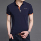 翻领男士短袖T恤立领半袖青年条纹polo衫修身体恤潮