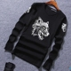 夏季t恤衫男长袖薄款黑色v领时尚狼头印花休闲鸡心领T血百塔衣服