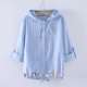 2017春季女装新款森女系小清新宽松印花全棉牛仔衬衫 韩版衬衣潮