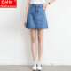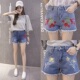艾绅纳毛边蓝色牛仔短裤女夏季韩版高腰绣花显瘦宽松百搭热裤学生