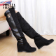 恋尘长靴女过膝秋冬新款长筒靴真皮高筒靴女士靴子弹力靴平底