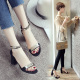 2017夏新款女鞋露趾一字扣带粗跟高跟凉鞋罗马女士性感凉鞋女
