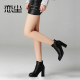 恋尘2016春秋冬款女鞋 欧美时尚粗跟圆头短靴 高跟短筒马丁靴单靴